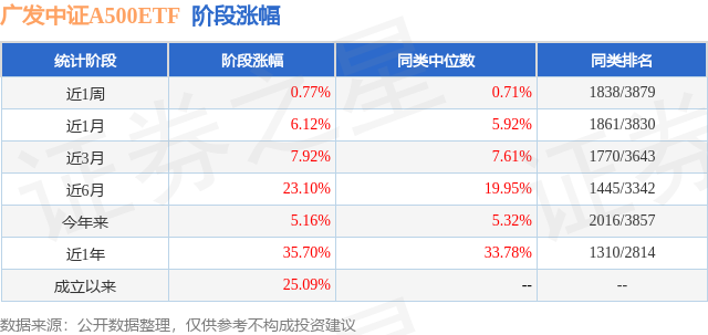 从功绩发达来看,广发中证A500ETF基金往常一年净值涨幅为35.7%,在同类基金中排行1310/2814,同类基金往常一年净值涨幅中位数为33.78%。而基金往常一年的最大回撤为-11.86%,耕种以来的最大回撤为-13.25%。